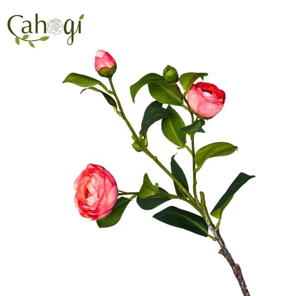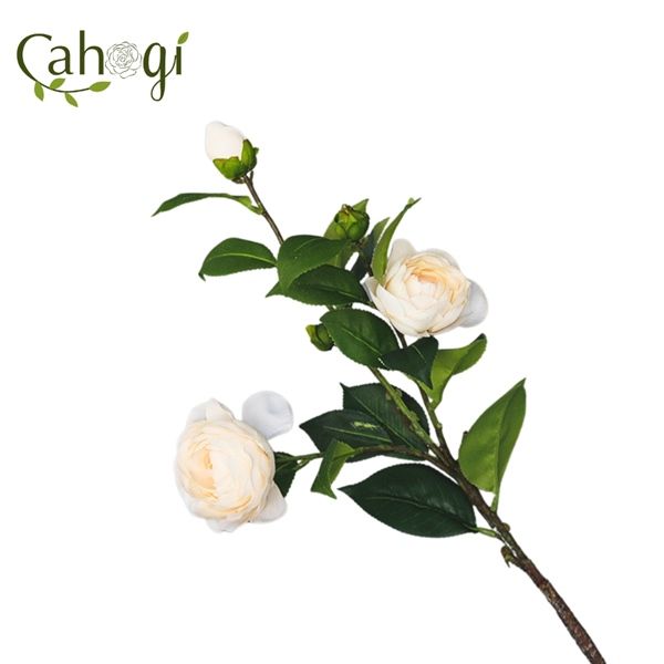 Cành Hoa Trà Giả Hoa Vải 2 Bông 3 Nụ 60 Cm