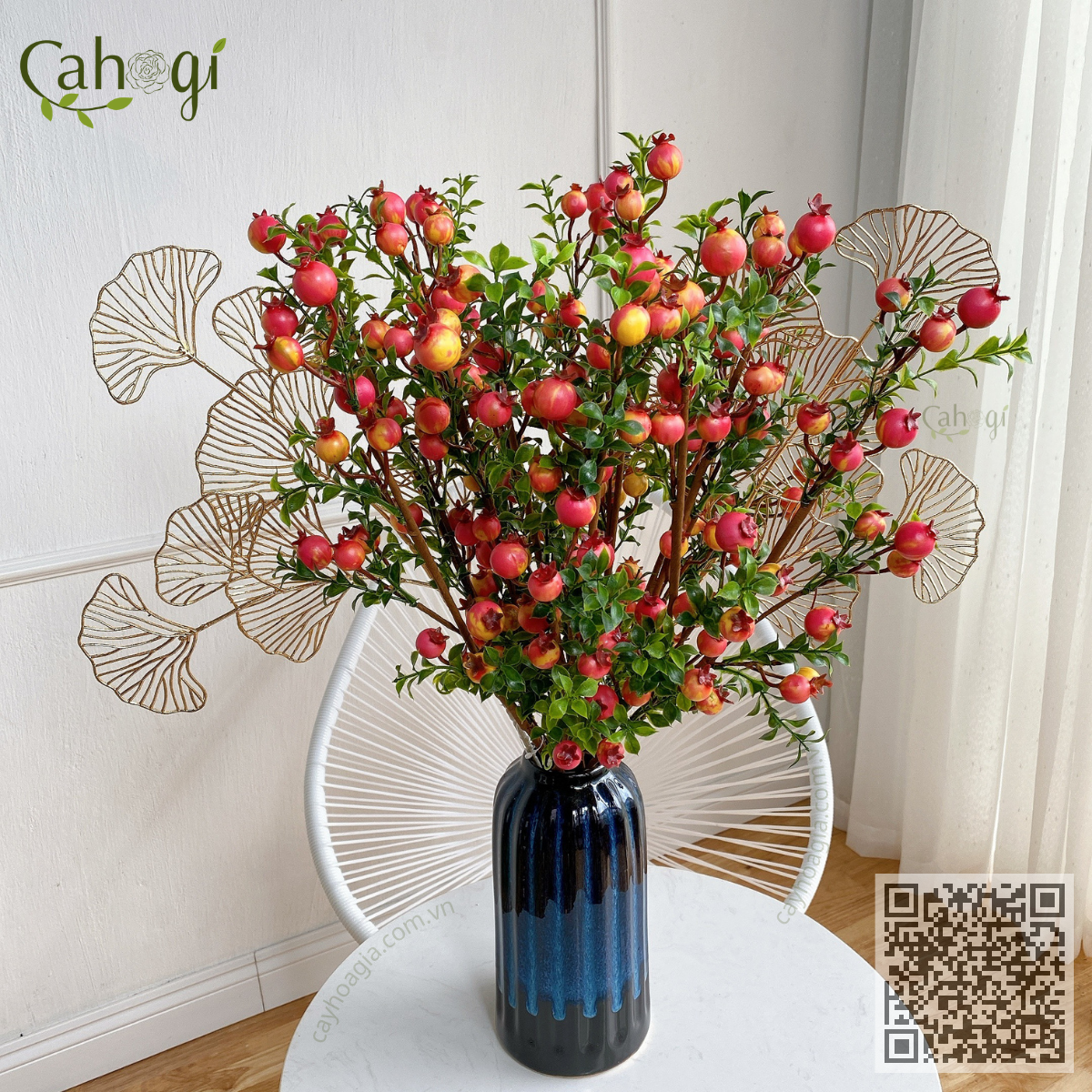 Kích Thước: dài cành 65cm.mỗi cành có khoảng 15-17 quả lựu nhỏ