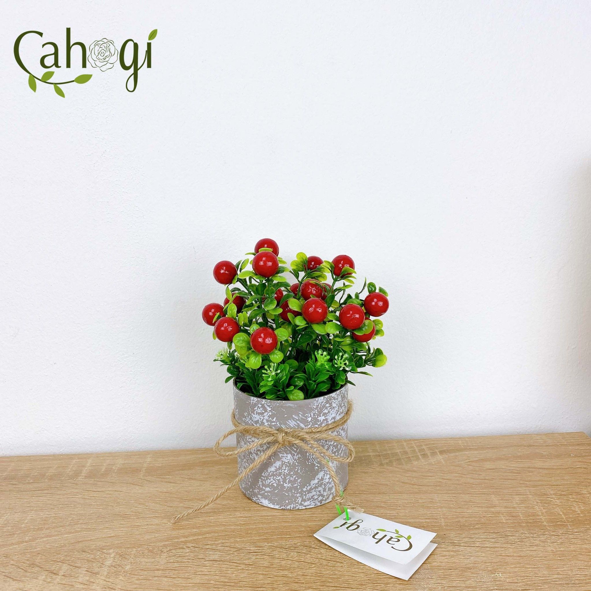 Chậu cây chery với thiết kế nhỏ gọn rất phù hợp để làm quà tặng. trang trí giá sách, bàn cafe và giá kệ nhỏ.những quả chery đỏ mọng bắt mắt kết hợp cùng chậu nhựa giả xi măng tạo nên một vể đẹp mộc mạc nhưng không kém phần thu hút.
