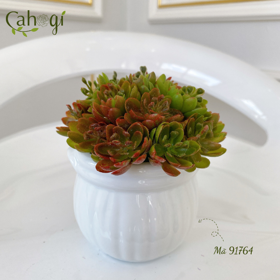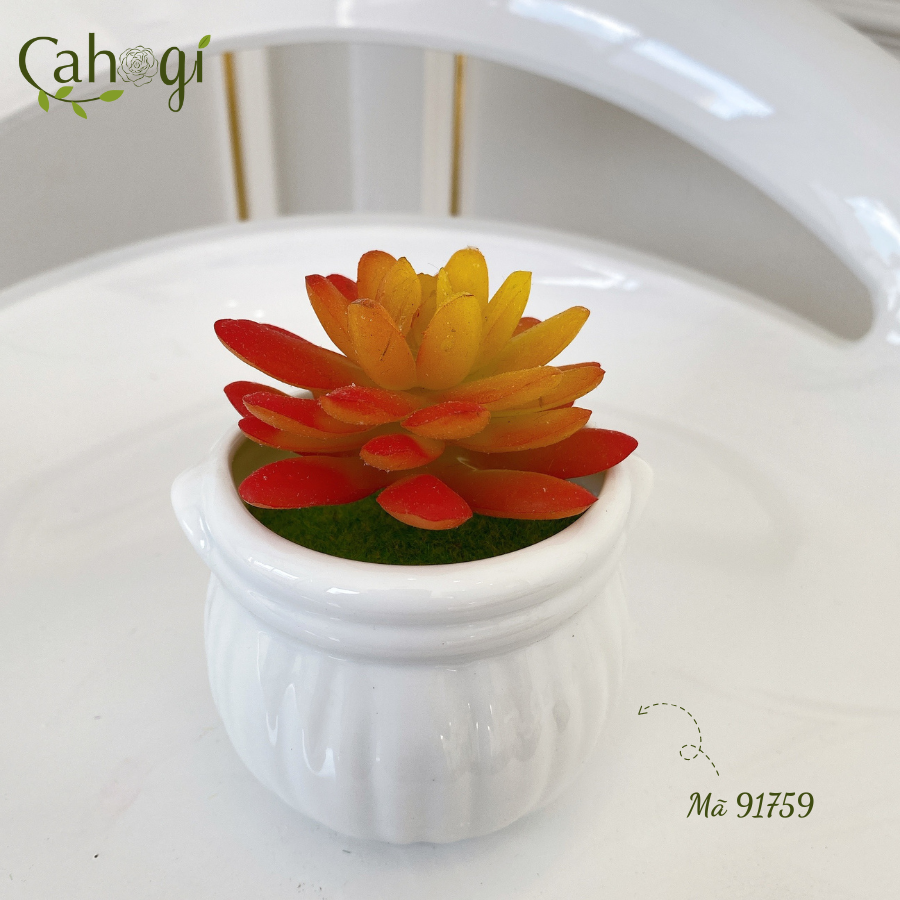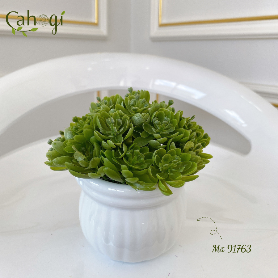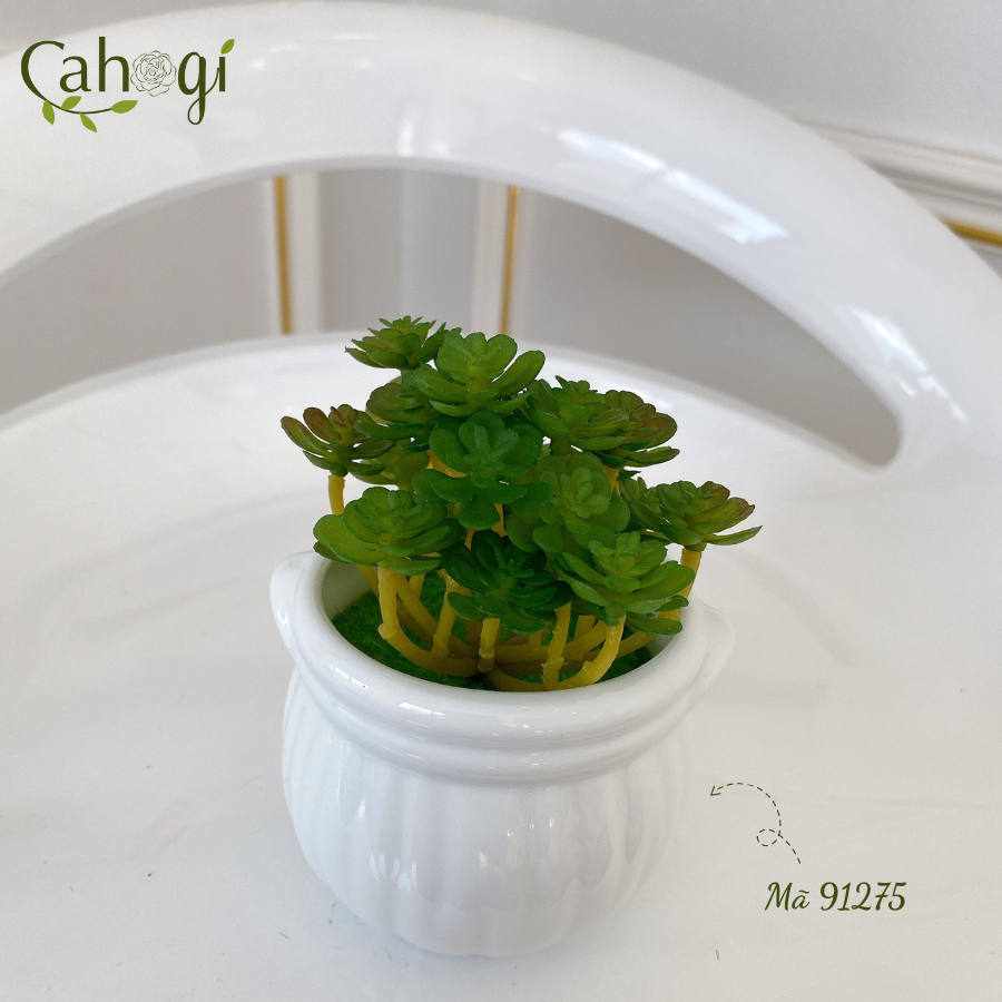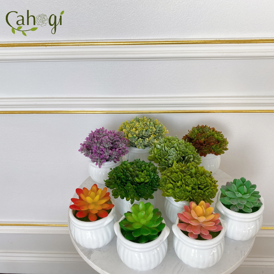 *Phân Loại chậu Sen Đá mọng nước chiều cao 11cm đường kính mặt cây 8cm chất liệu :chậu sứ Nhồi xốp phủ cỏ Giả, cây nhựa