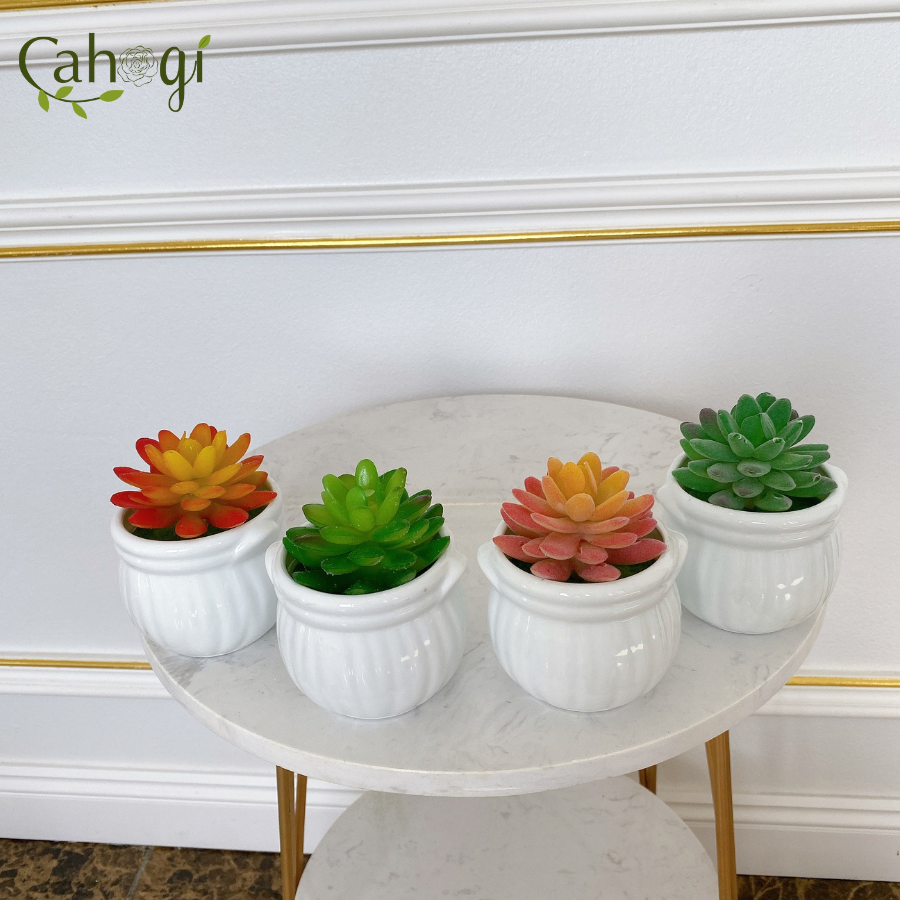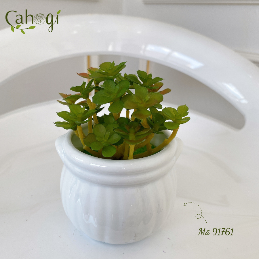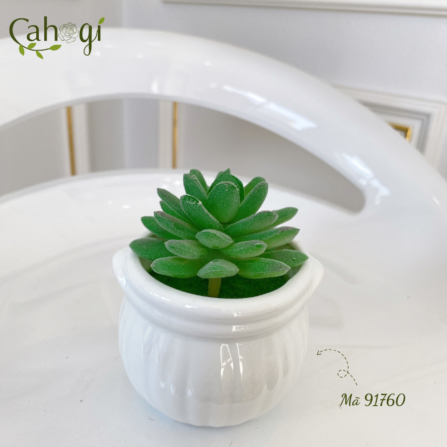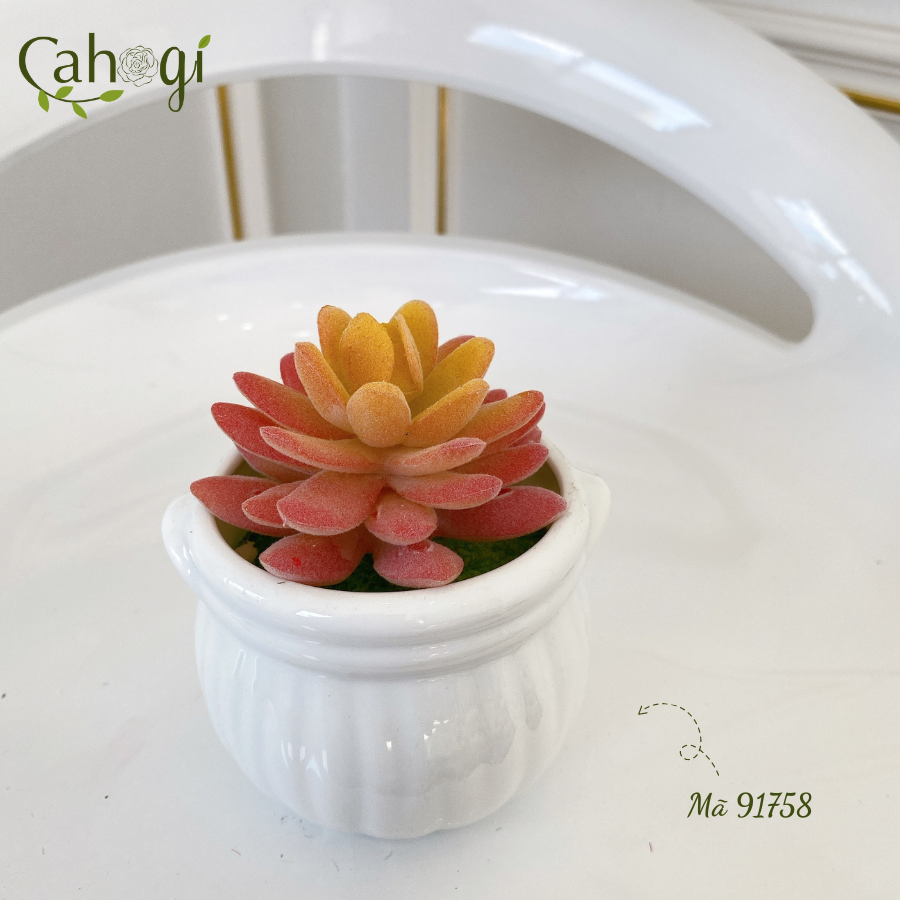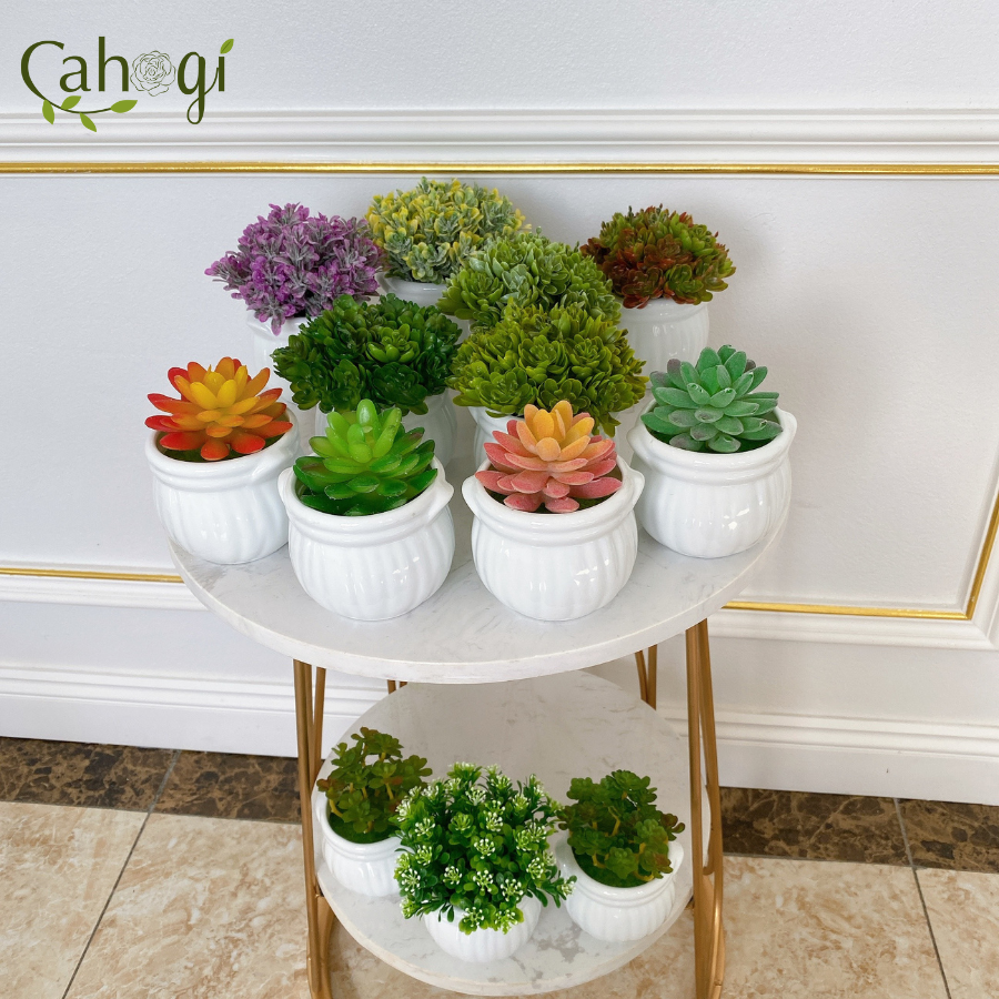 *Phân Loại chậu Sen Đá mọng nước chiều cao 11cm đường kính mặt cây 8cm chất liệu :chậu sứ Nhồi xốp phủ cỏ Giả, cây nhựa