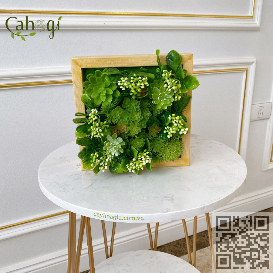 KHUNG TRANH SEN ĐÁ GIẢ CẮM SẴN CỠ 20X20 CM