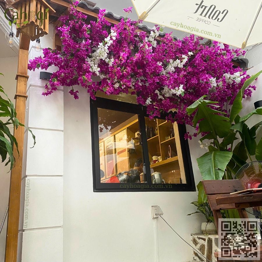 Thi Công Cây Hoa Giấy Giả Trang Trí Quán Cafe